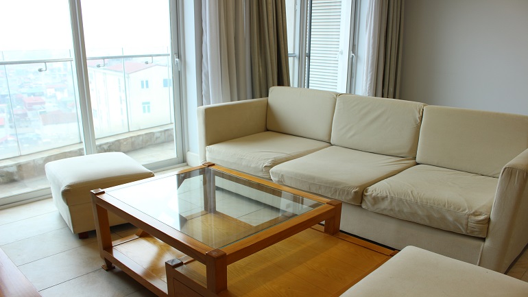 The Apartment is on medium floor of East building. It has total area 128 sq.m, full of modern furniture and composes 3 bedrooms,2 bathrooms with bathtub, kitchen and living-room. This Apartment has balconies, big glasses windows and nice lake view.