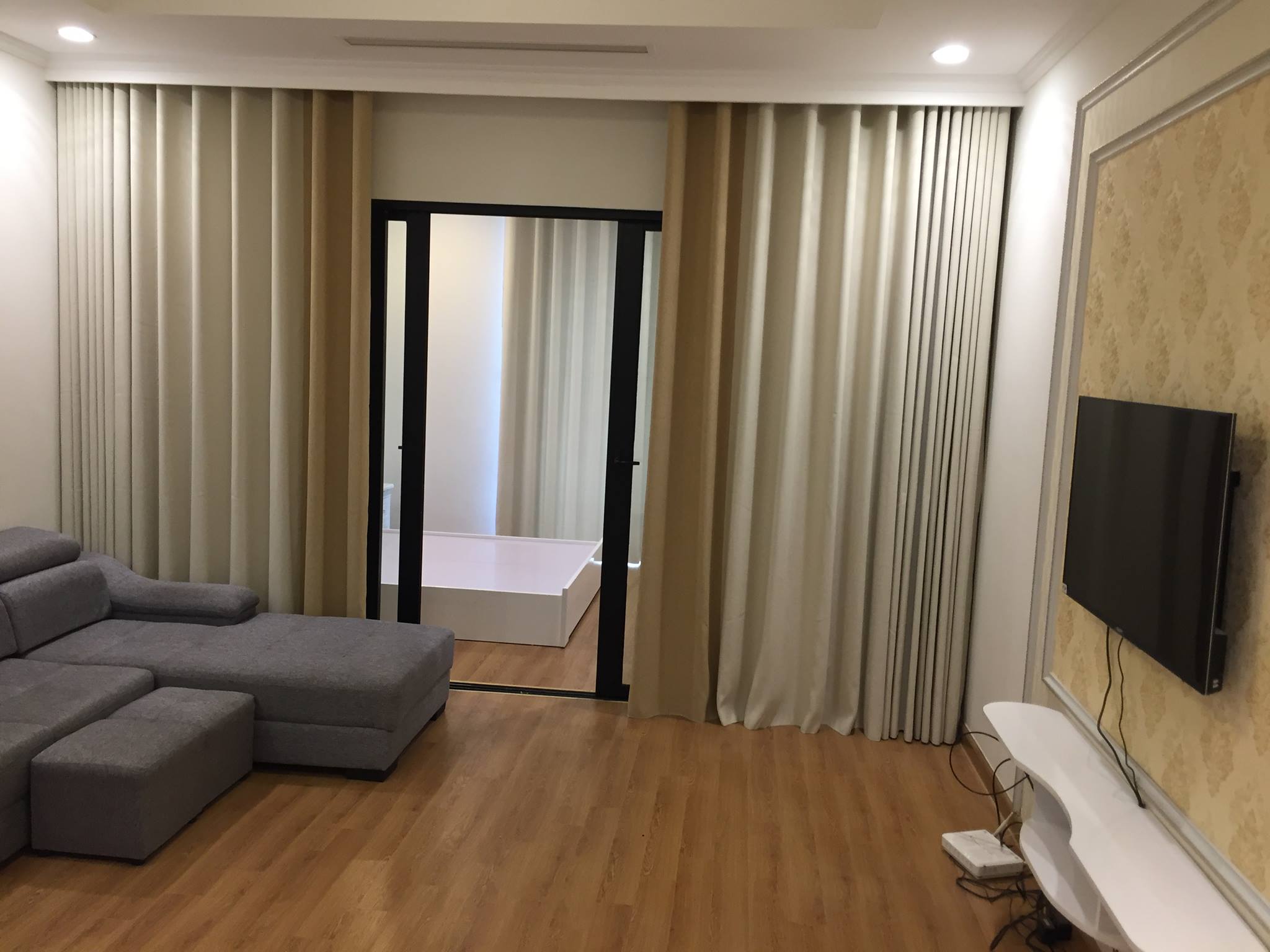 Căn hộ có diện tích 55m2 gồm 1 ngủ, 1 phòng khách, 1 WC và nhà bếp, nội thất cao cấp gồm có: đủ thiết bị bếp, tủ bếp, lò vi sóng, ấm siêu tốc, nồi cơm điện, thìa, dĩa, bát đĩa, thiết bị vệ sinh cao cấp, điều hòa multi âm trần, sàn gỗ, tủ âm phòng ngủ, sofa, tủ lạnh, máy giặt, máy hút bụi, SMART Tivi 43 ich (internet tivi), chuông cửa có hình, khóa cửa vân tay, 2 quạt cây Mishubishi, Bàn trang điểm, Bàn làm việc, Bàn là, Cầu là….